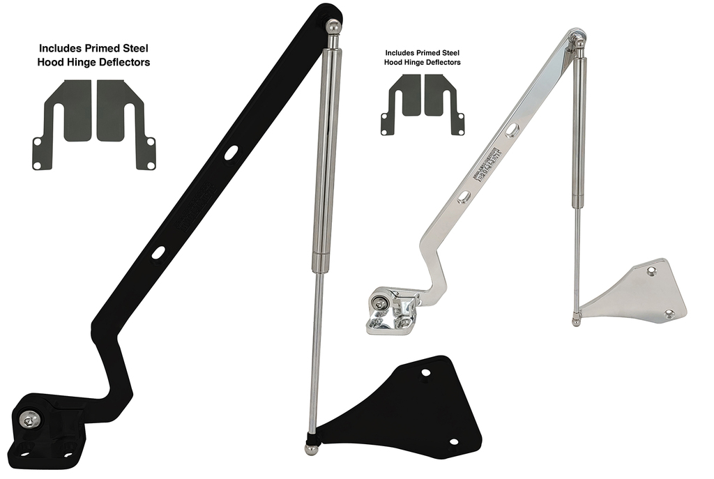 All American Billet Hood Hinges for ’81-’87 Chevy Trucks, ’81-’91 Suburban & Full-Size Blazers are machined from 6061-T6 aluminum and made to last. They come with larger bearings, stainless steel gas struts, and stainless steel hardware. Available in Polished, Black Anodized and Machined Finish. Sold in pairs.