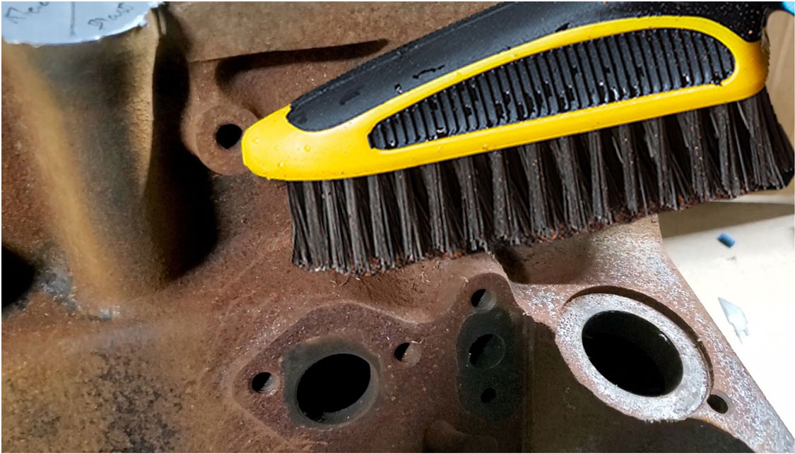 3. RustBlast is then applied to dissolve and neutralize remaining rust and provide an etched surface for adhesion of Motor Coater Engine Enamel. RustBlast eliminates the need to remove every last trace of rust before coating, making preparation faster and less labor-intensive.