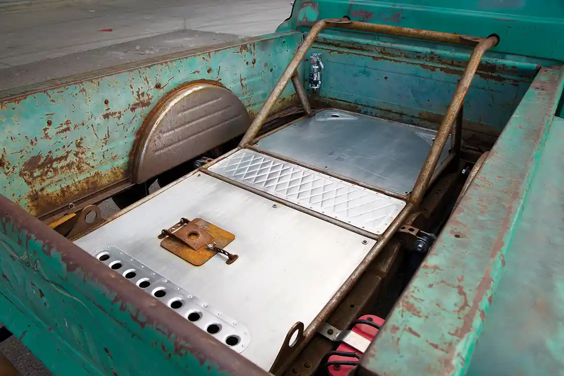 The dimple-die styling also made its way to the top of the hood, front fenders, rear bumper and bed. The look was just too good to confine to the inside of the cab. Even through all of the truck’s many phases of restyling, however, it maintains a very genuine and authentic aura, thanks to the natural patina finish it has earned through the years. Its rusted, worn-down façade is almost like a badge of honor, an award, of sorts, for surviving after decades of being down for the count. The imperfect surface also stands as proof that these types of finds are still out there for those willing to search. Jim did it, and so can anyone else out in the wild who isn’t afraid of a challenge. ST