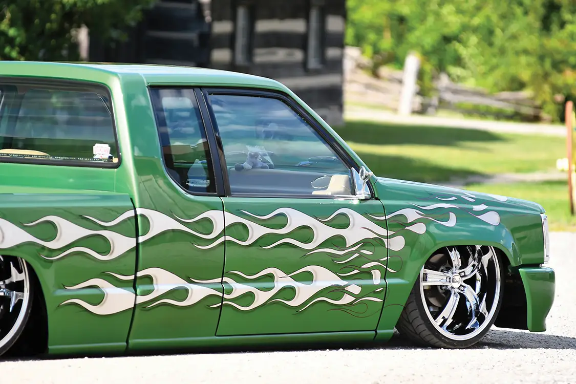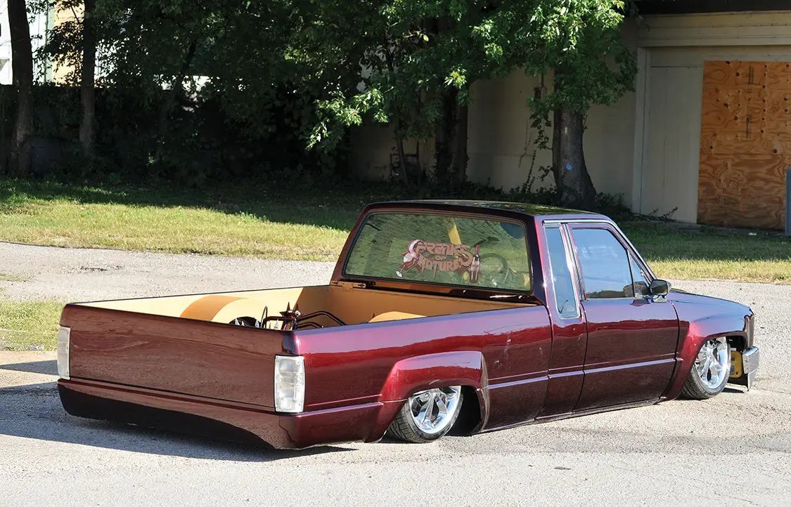 Inside, we’ve got a full spread of builds from every corner of the scene. We kick things off with MerLow, a clean Toyota pickup that proves old-school can still turn heads. Then we dip into Braggin’ Rights, where Chance’s green squarebody takes center stage with killer paint and attention to detail you’ve got to respect. Speaking of detail, William Salazar’s Ontario, Canada-built mini-truck called Greenga is still sittin’ pretty today with timeless style.
