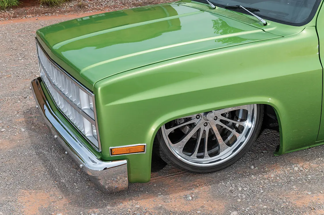 Inside, we’ve got a full spread of builds from every corner of the scene. We kick things off with MerLow, a clean Toyota pickup that proves old-school can still turn heads. Then we dip into Braggin’ Rights, where Chance’s green squarebody takes center stage with killer paint and attention to detail you’ve got to respect. Speaking of detail, William Salazar’s Ontario, Canada-built mini-truck called Greenga is still sittin’ pretty today with timeless style.