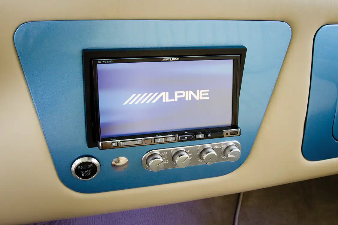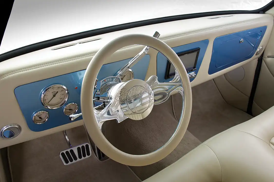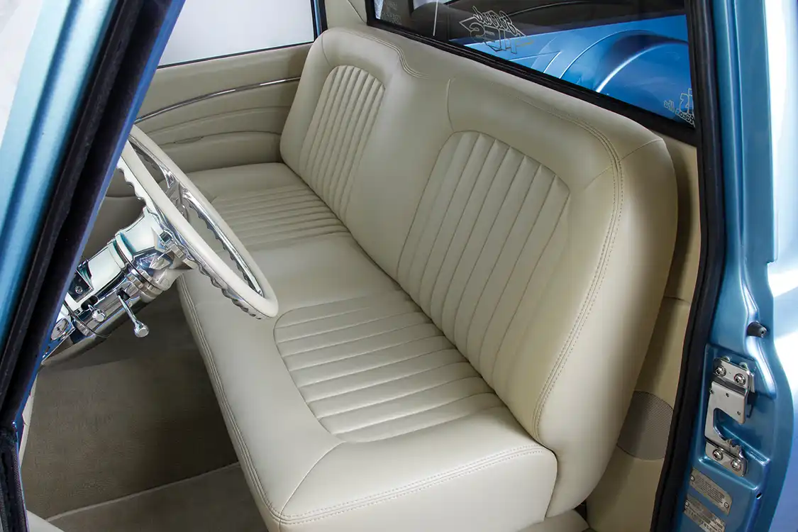 As the C-10 neared completion, it was sent to Victor Moreno of V Custom Hot Rod Interiors. Victor used pressed wood to smooth the stock floor and then created a custom headliner. Kick panels, door panels and a rear speaker box were next on the list. Then a C/K Chevy bench seat was modified and placed. Next, everything, including the custom dash, was covered in light tan Ultraleather. Since John plans to drive this truck, he made sure it had plenty of creature comforts including an Alpine sound system and Vintage Air Gen IV air conditioning unit.