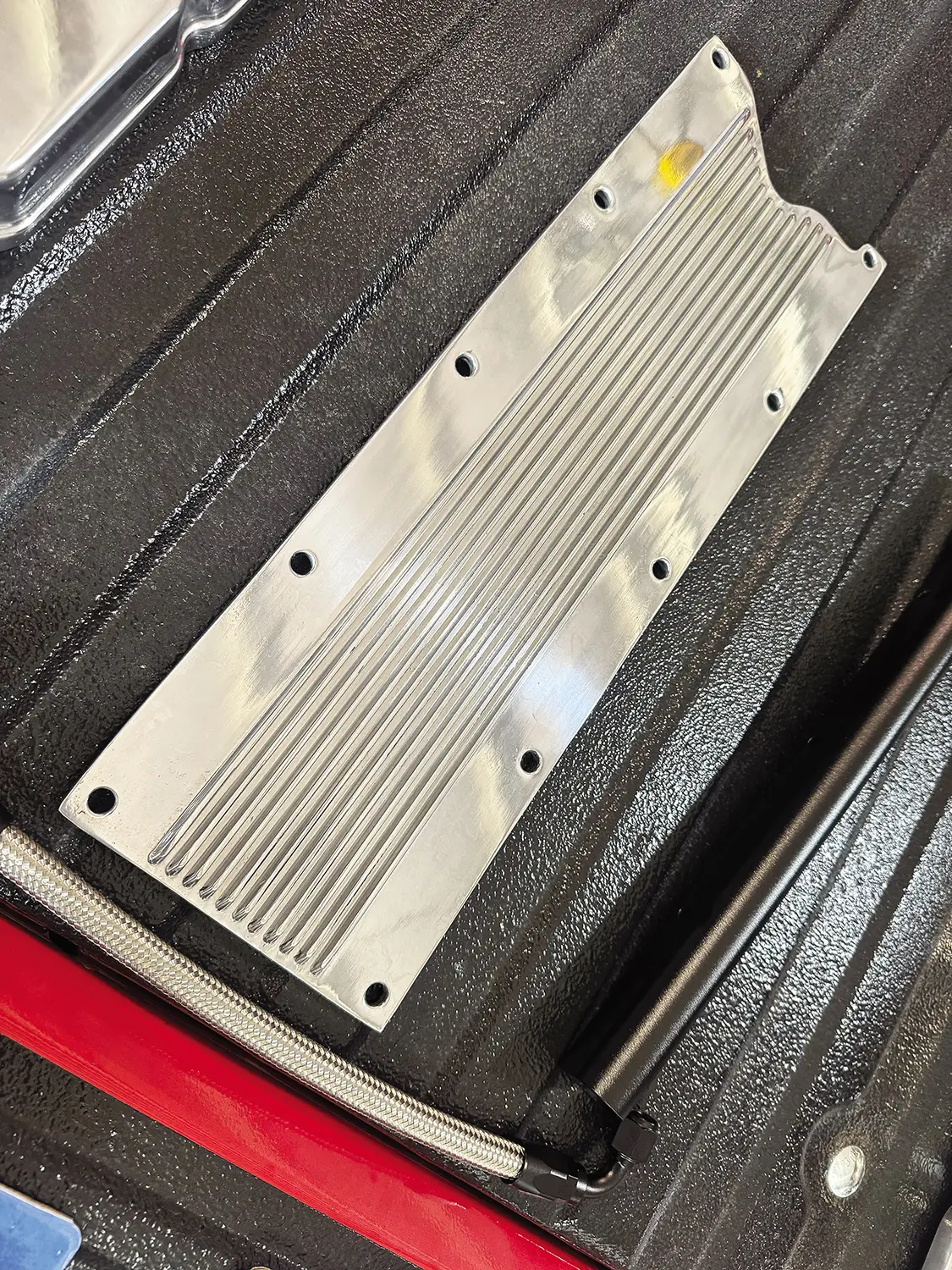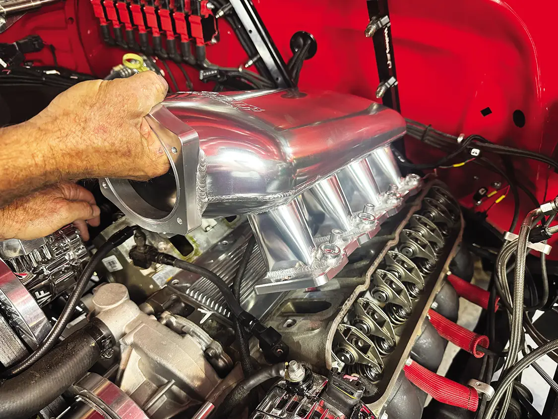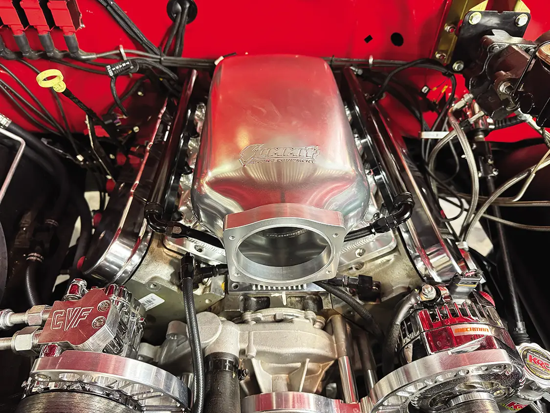 The engine bay of Project Rocky was originally designed to have a classic look while sporting modern power. The 5.3L LS engine from Summit Racing had a cool look to it with an old-school-looking air cleaner and remote-mounted coil packs. The thought was that when the hood opened, people would be impressed that it’s actually an LS while looking like a small-block. We found out, however, that when we popped the hood at truck shows, most people were less than impressed and just kept walking. A clean carbureted engine is not what we have installed, that’s what it looks like from 15 feet away. Nowadays, a clean look doesn’t create a wow factor. With all the time and effort we have in this build, we want jaws to drop at any angle, so it’s time to make it look as modern as it truly is.