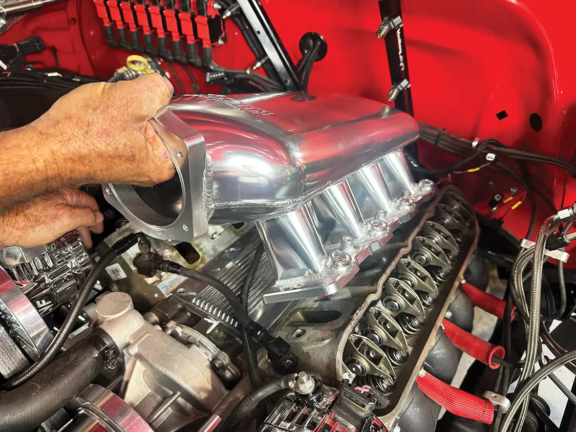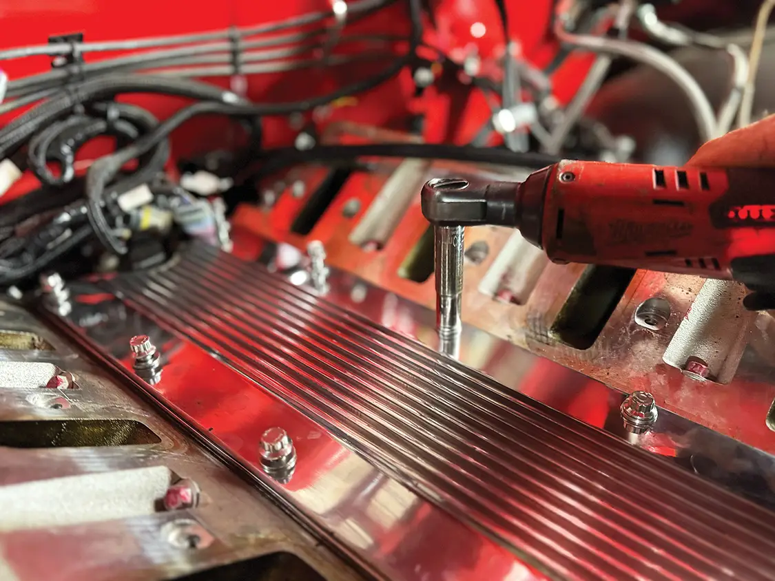 The engine bay of Project Rocky was originally designed to have a classic look while sporting modern power. The 5.3L LS engine from Summit Racing had a cool look to it with an old-school-looking air cleaner and remote-mounted coil packs. The thought was that when the hood opened, people would be impressed that it’s actually an LS while looking like a small-block. We found out, however, that when we popped the hood at truck shows, most people were less than impressed and just kept walking. A clean carbureted engine is not what we have installed, that’s what it looks like from 15 feet away. Nowadays, a clean look doesn’t create a wow factor. With all the time and effort we have in this build, we want jaws to drop at any angle, so it’s time to make it look as modern as it truly is.