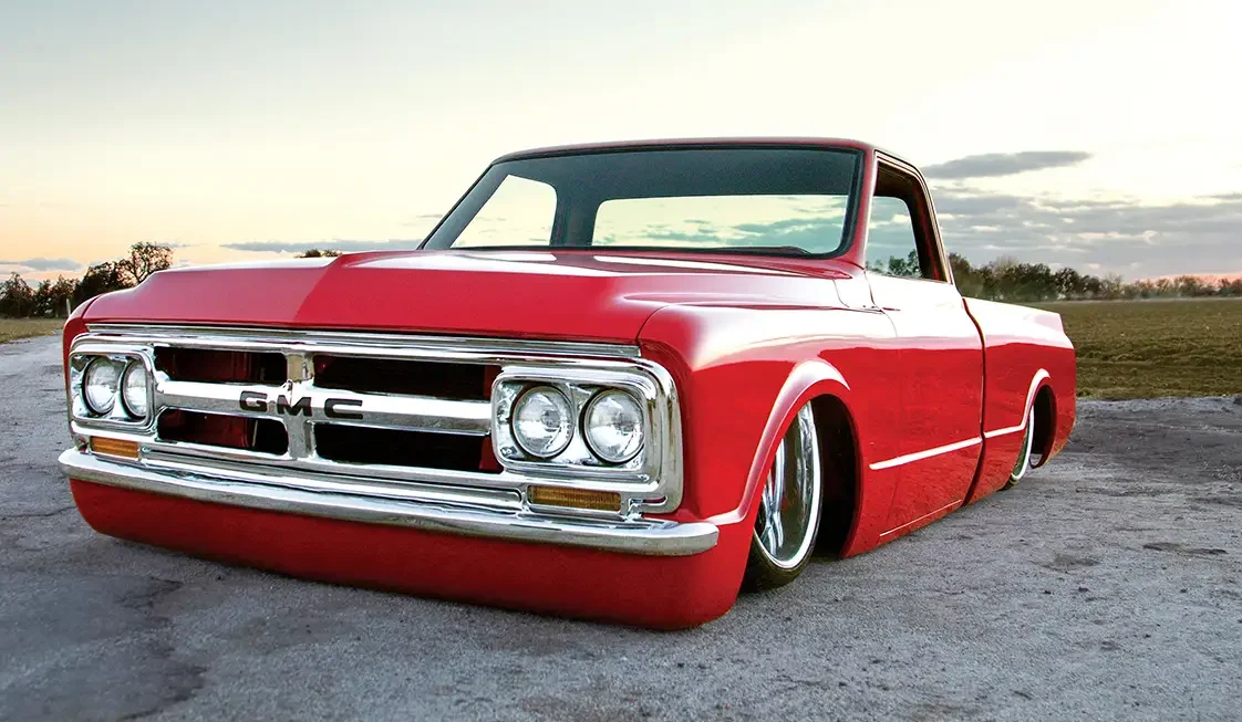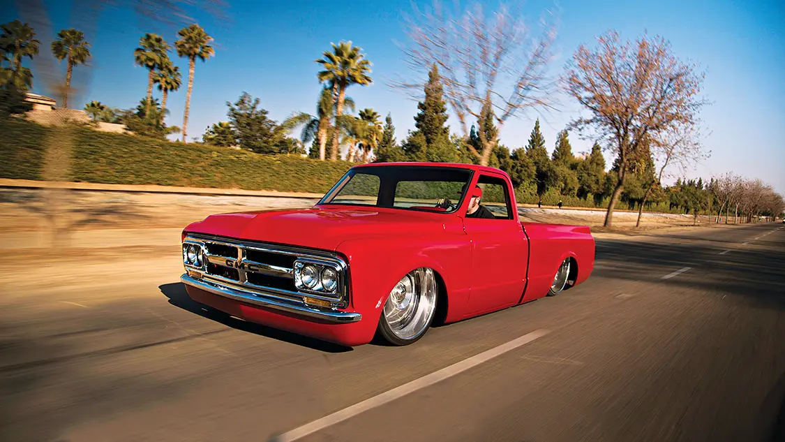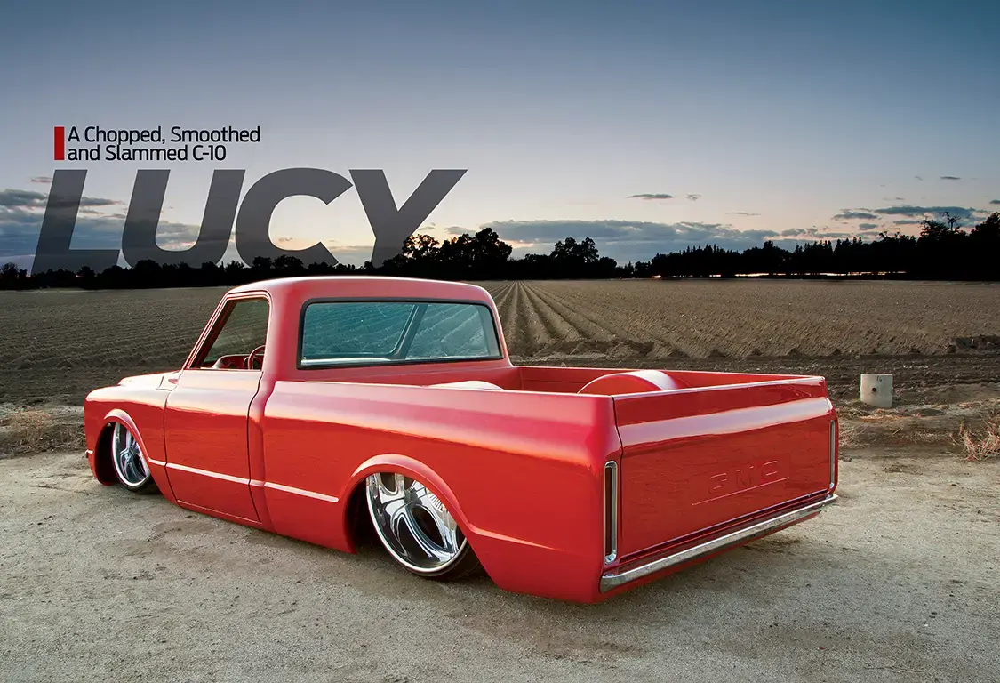 Having varied his résumé of custom car builds, Pony decided to get back into the truck game. For reentry, he chose the ever-popular 1967-72 GM truck platform and decided to go fairly radical on the build with custom suspension, big wheels and several body mods. The end result is Lucy, a wild combination of everything he’s learned in a subtle, timeless package.