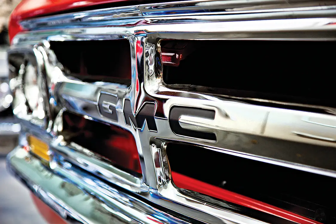 Next, Pony contacted metal master Bob Grant of Grant Kustoms to provide the finishing touches. Bob produced custom front and rear roll pans with built-in flush bumpers, and a smoothed tailgate, with “GMC” stamped in the center, sporting 1984 Buick LeSabre taillights was the custom coup de grace. The Buick lights mimic the shape of the factory versions, but they’re larger and provide a custom touch that only those in the know will pick up on.