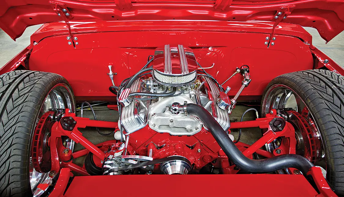The front suspension was narrowed with Choppin’ Block tubular control arms to allow the front 24×10-inch wheels to turn fully. The billets were wrapped in Toyo Proxes 275/25R24 and 315/25R26 in the rear. To stop the massive rollers, a full set of CPP big brakes complete with booster and Wilwood master cylinder were installed. The entire chassis and all of the suspension components were powder-coated red at Simoe’s Custom Coatings.