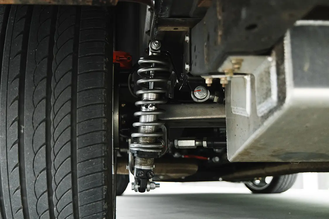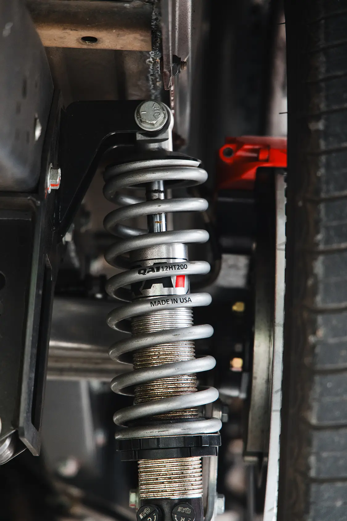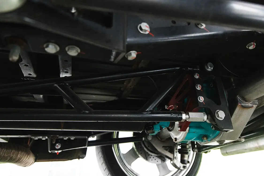 It’s rough around the edges but built to move. They backed it up with a full QA1 suspension, a custom 9-inch rearend from LaFitte Fabrication, Baer brakes, and big JTX wheels—22s up front and 24s out back. The engine? Straight-up junkyard gold. They cleaned the cylinders with sandpaper, dropped in a cam and springs, buttoned it up, and it’s been hittin’ hard ever since.