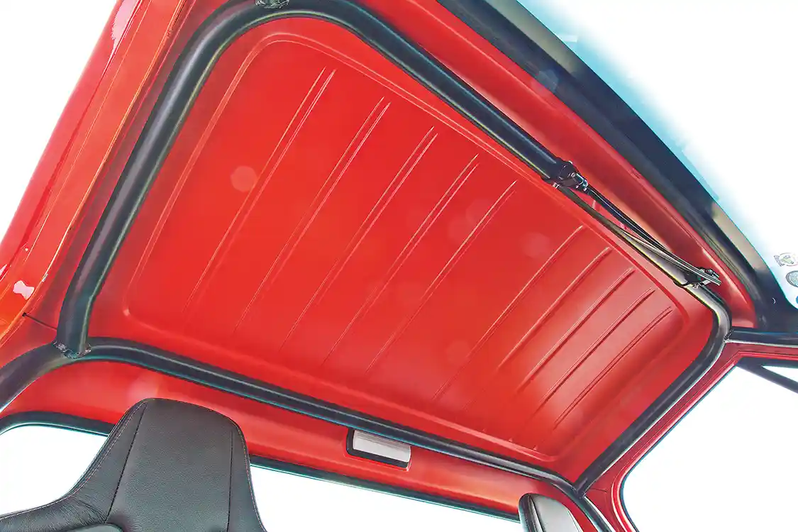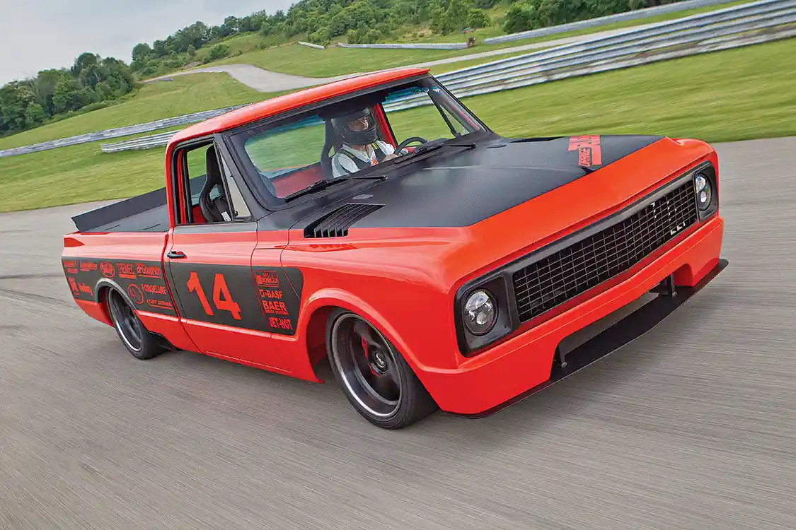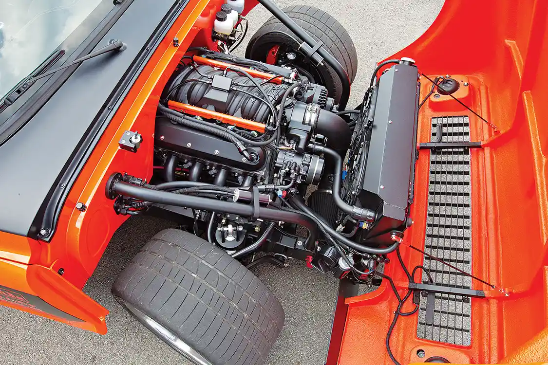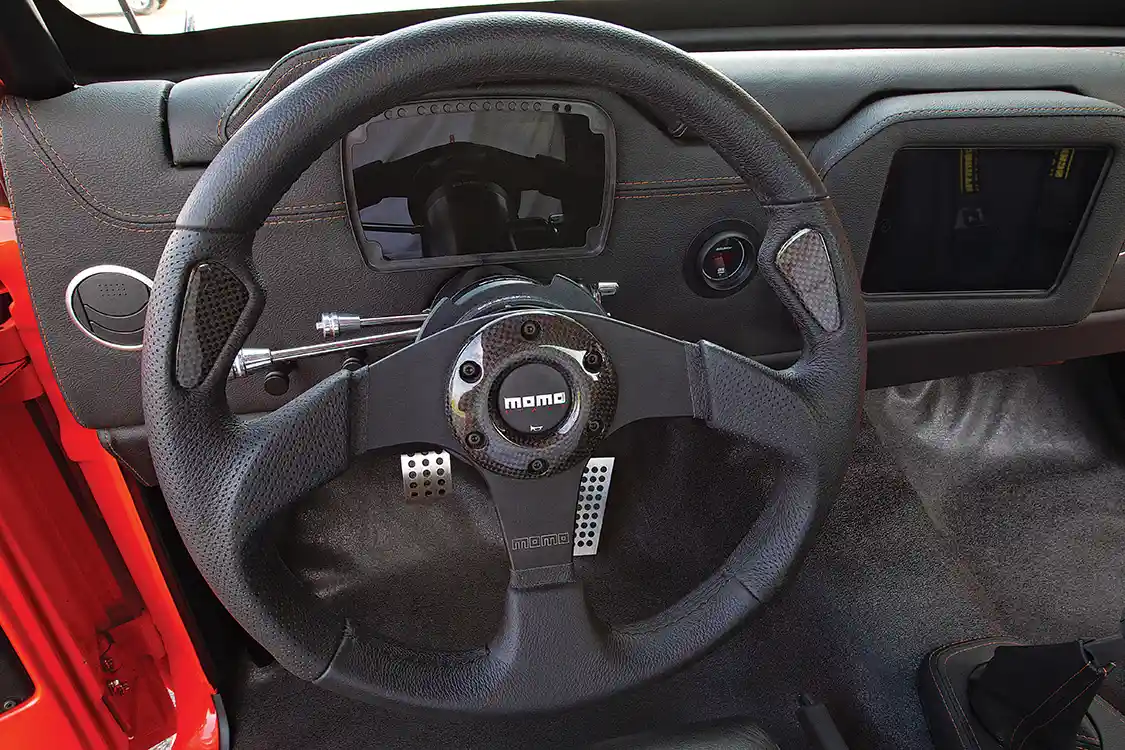 Helping out the interior, RPM Hot Rods upholstered the Recaro seats in black leather with orange stitching, along with the dash, door panels and console. Then the truck was sent to Hutter Performance so that the motor could be tuned to push 529 hp at the rear wheels. Bob and Shayne finished the truck at noon the day they needed to leave for the Goodguys Nashville Nationals. With zero miles on the engine, they loaded it into the trailer and planned to run it in Nashville to break it in before the event. Traffic delayed them, so when they stopped to fuel the rig, Bob pulled Orange Rush out and made a 2-mile test run. The next day they competed in autocross and won. ST