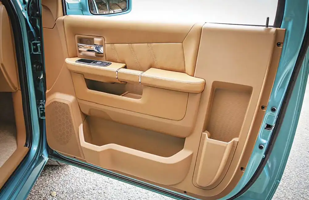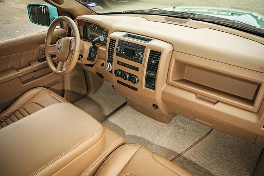 To finish up, Sean upgraded the look of the interior. He enlisted help from Julio Tornero of Interiors by Design in Rosharon, Texas. Julio broke down all of the interior pieces and covered them in either tan leather or a dyed them to match the new leather. After Julio was finished with the inside, this truck was ready to hit the scene, satisfying Sean’s wish to have a clean, low custom truck. ST