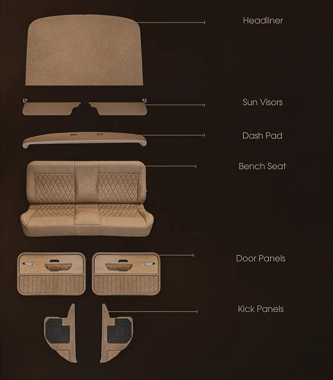 Fat Fender Garage delivers handcrafted, customizable interior kits for classic Ford trucks, early Broncos, and Chevy C10s, each designed for a precise factory-style fit with modern comfort and style.