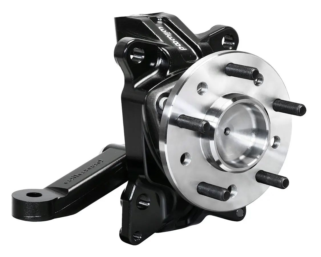 When accompanied by Wilwood’s disc brake upgrade kits, its ProSpindles will assist in improving the handling, styling, and braking capacity on all 1973-1987 Chevy/GMC pickups, as well as 1963-1972 models that have been updated with the later model ball joints. ProSpindles feature forged aluminum bolt-on steering arms and forged aluminum knuckles with fortified caliper mounting bosses for the full range of Superlite and Aerolite disc brake kit options.