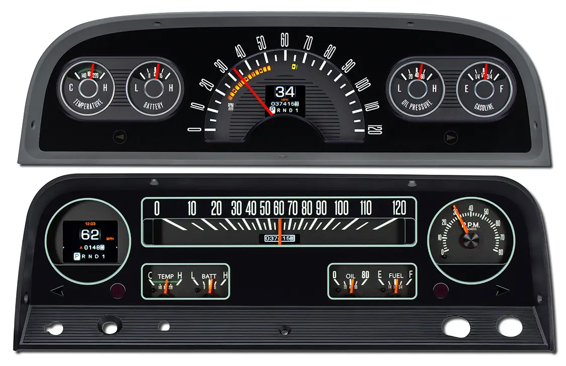 Get the vintage look you want with the modern capabilities you need. The RTX Series from Dakota Digital boasts a TFT message center and full RGB lighting so you can add important information, while the tachometer allows you to keep an eye on the revs. Retain a stock look without sacrificing the late-model features you love.