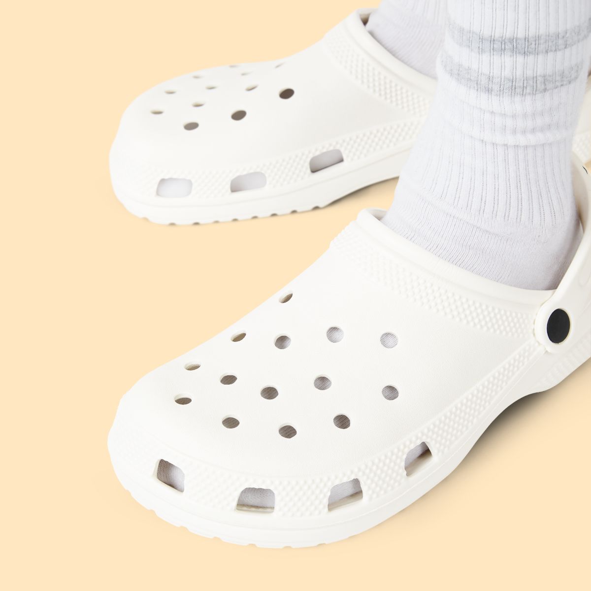 Lightweight, cushioned clogs designed for easy, all-day wear. These EVA foam shoes feel springy underfoot and move with you — indoors or out — while the breathable perforations keep feet cool. A printed upper and strap give each pair personality, and assorted clog charms let you personalize the look. Simple black or white soles keep the silhouette clean so these clogs slip effortlessly into casual routines, garden breaks, or relaxed weekends by the water.Product features- 100% EVA construction for lightweight, flexible wear- Soft, cushioned EVA sole with anti-slip tread- Breathable perforated upper and printed strap surface- Available with black or white insole/outsole options- Includes assorted clog accessory charms; EU size embossed on soleCare instructions- Do not machine wash these, hand wash only. Do not use detergents containing corrosive substances for cleaning. Air dry away from direct sunlight.