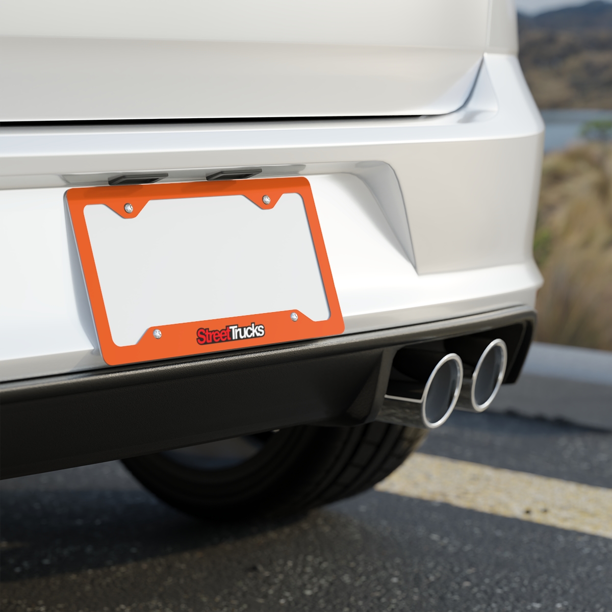 Street Trucks Logo Metal License Plate Frame Orange