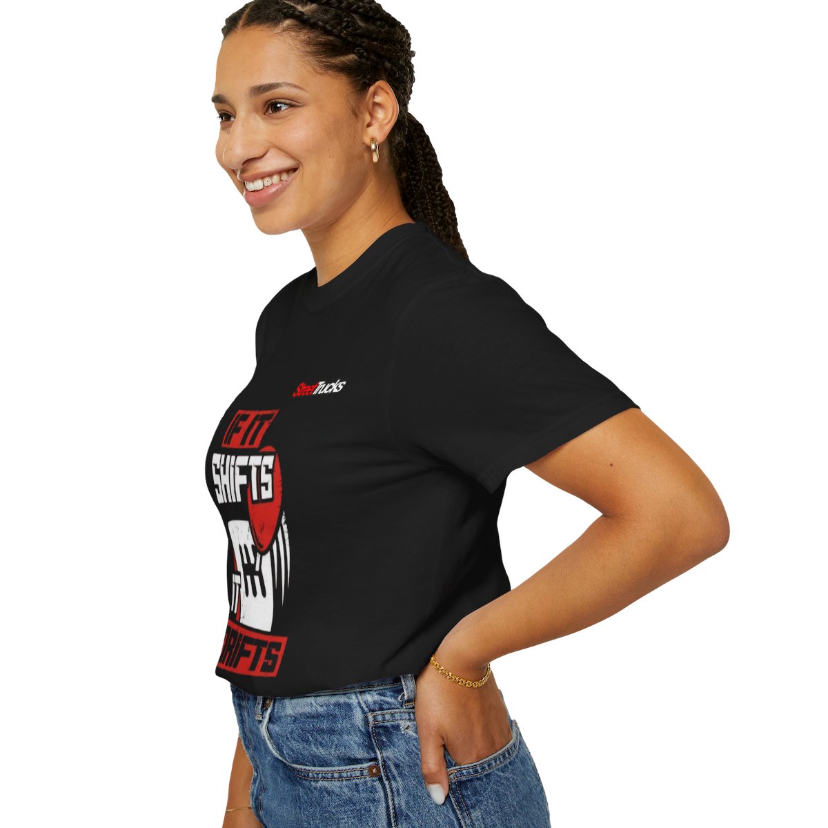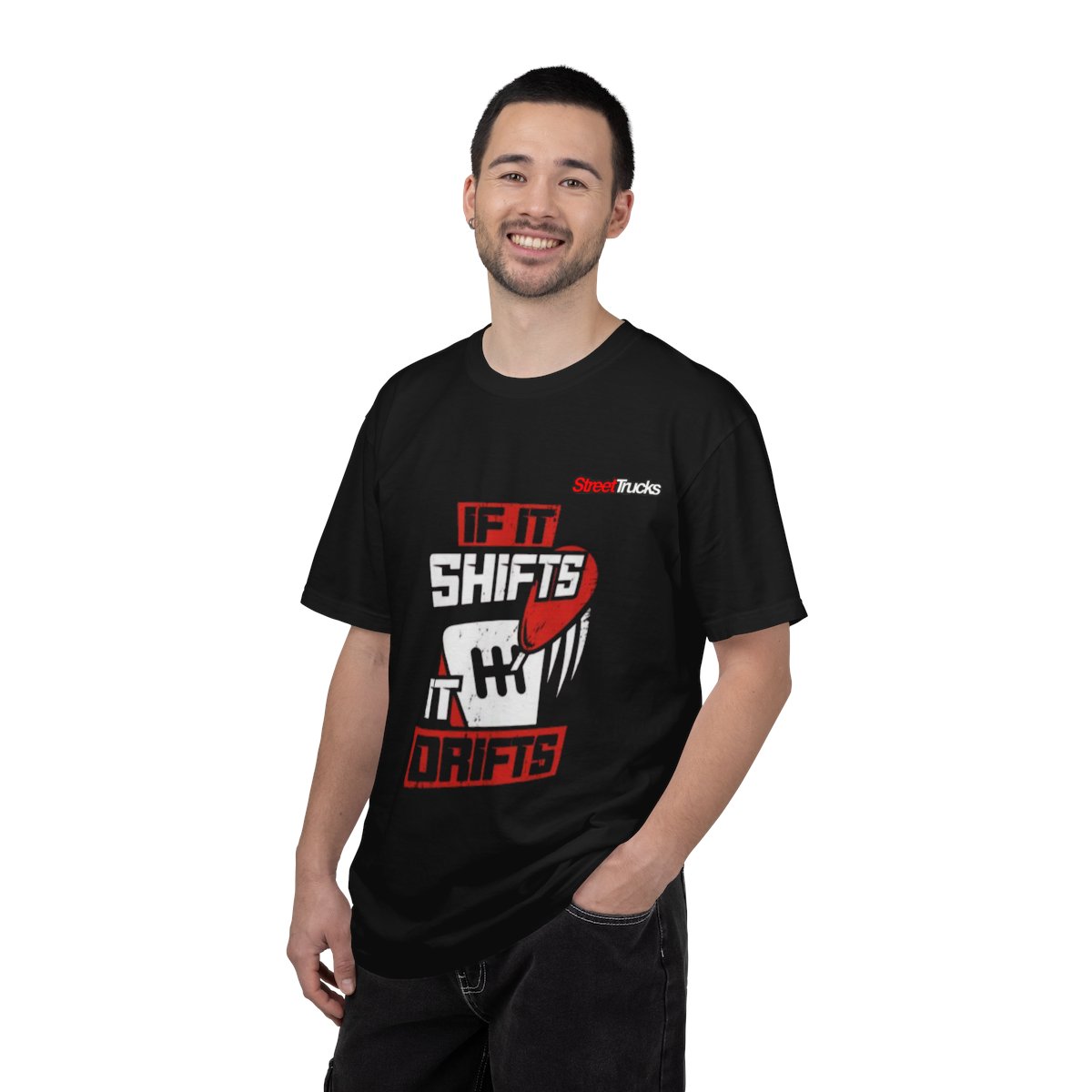 This heavyweight, garment-dyed tee carries a bold driving attitude. The front graphic — a snarling gear lever and tire-scrape marks wrapped in high-contrast red and white — reads “If it shifts, it drifts,” while a small logo sits at the upper back. The relaxed, roomy cut and thick 100% ring-spun cotton feel broken-in from the first wear, with a soft color and lived-in texture from the post-construction dye process. It sits well over jeans or under a jacket for meets, track days, or late-night cruise-ins. The overall vibe is confident and a little rebellious — made for people who love manual shifts, smoky exits, and the mechanical soundtrack of a tuned engine.Product features- 100% ring-spun US cotton for durable comfort- Garment-dyed after construction for a soft, worn-in color and texture- Heavyweight 6.1 oz fabric with relaxed fit and pre-shrunk construction- Tubular knit (no side seams) and double-needle stitched seams for longevity- Available S–4XL with sewn-in label; 58 color choicesCare instructions- Machine wash: cold (max 30C or 90F)- Do not bleach- Tumble dry: low heat- Iron, steam or dry: low heat- Do not dryclean