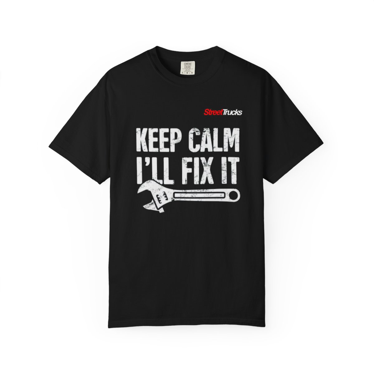 A rugged, garment-dyed cotton tee made for hands-on people who prefer action over fuss. Bold distressed lettering and a wrench graphic read “KEEP CALM I’LL FIX IT,” sending a quiet confidence that says you handle problems — whether roadside, in the shop, or at home. The relaxed, heavyweight knit feels broken-in from the first wear and the soft, lived-in dye gives each shirt subtle color variation. It sits just right for long days under the hood or casual evenings around a fire, and the small logo on the upper back adds a touch of workshop cred without shouting. Lightweight enough for layering, yet stout enough to stand up to real workdays.Product features- 100% ring-spun US cotton — soft, pre-shrunk, and durable- Garment-dyed for a vintage, worn-in color and texture- Heavyweight 6.1 oz fabric with relaxed fit for comfort during long workdays- Tubular knit (no side seams) and double-needle stitching for durability- Available S–4XL and sewn-in label; offered in 58 colorwaysCare instructions- Machine wash: cold (max 30C or 90F)- Do not bleach- Tumble dry: low heat- Iron, steam or dry: low heat- Do not dryclean