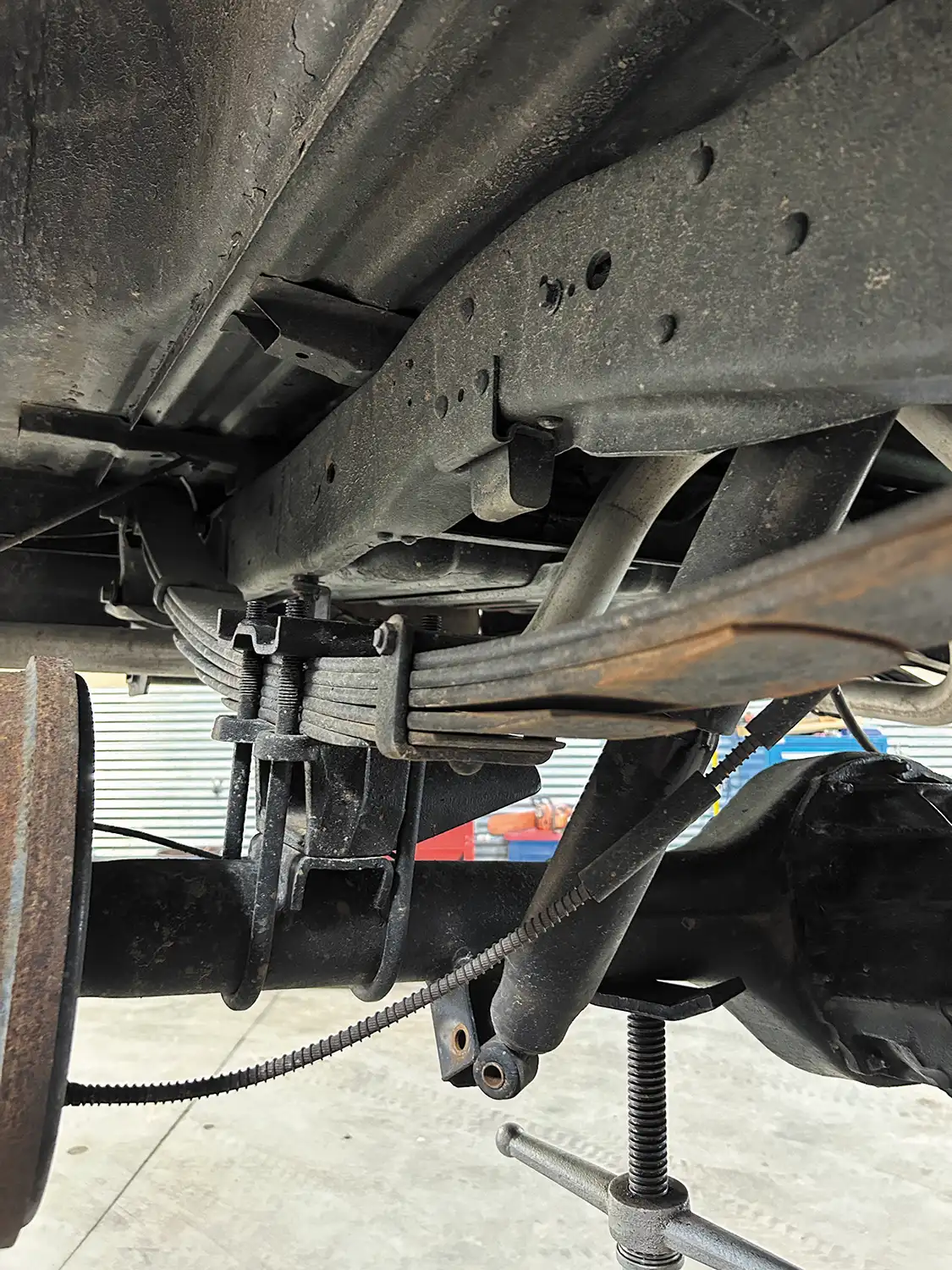 Tip: Watch driveshaft slack as the axle drops—don’t let it pull out of the slip yoke.