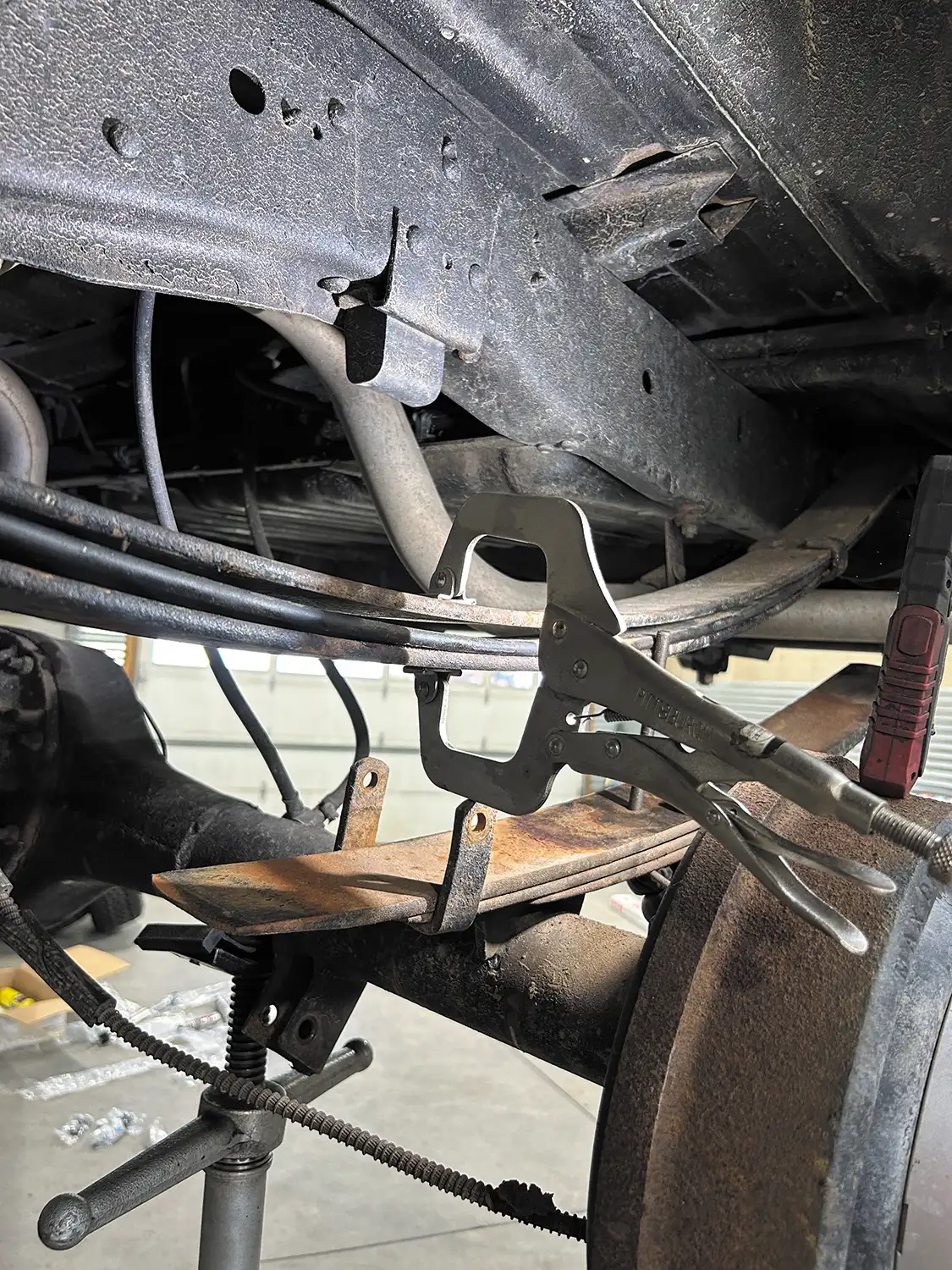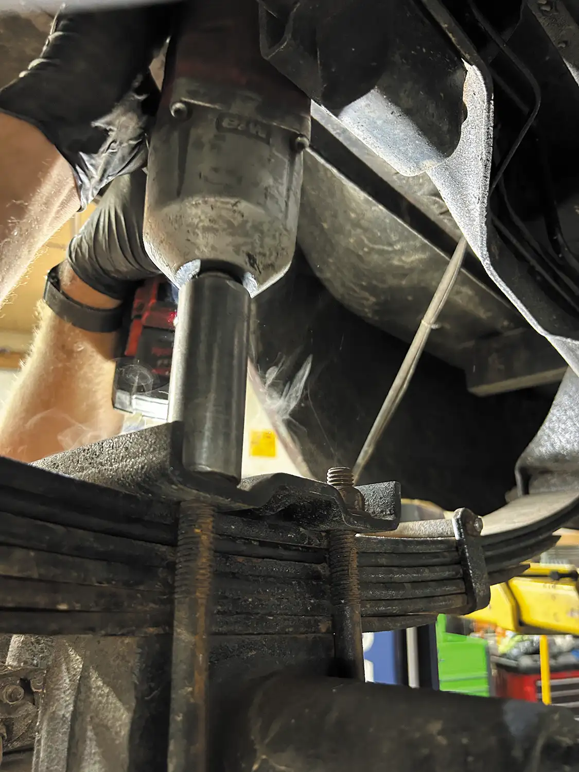 Spray all bolts the night before.Soak every suspension bolt—radius arms, U-bolts, shock mounts, etc.—with penetrating oil.