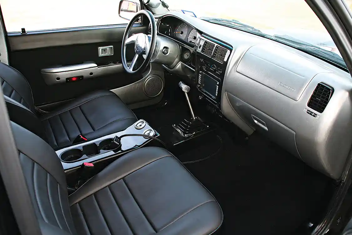 The only portion of the truck that Matt didn’t go nuts on was the engine, but that’s only because it didn’t really need much besides catching up on the maintenance schedule. “It’s the original motor with 160k miles on it. I dressed it up a bit and added a few improvements, but it wasn’t broken, so it didn’t make sense to toss it aside.” Yep, things were looking real good for the family beater truck.