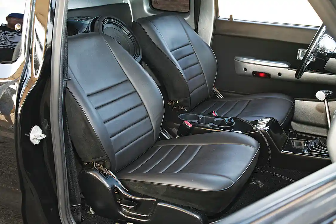 • Black vinyl and suede- covered bucket seats
