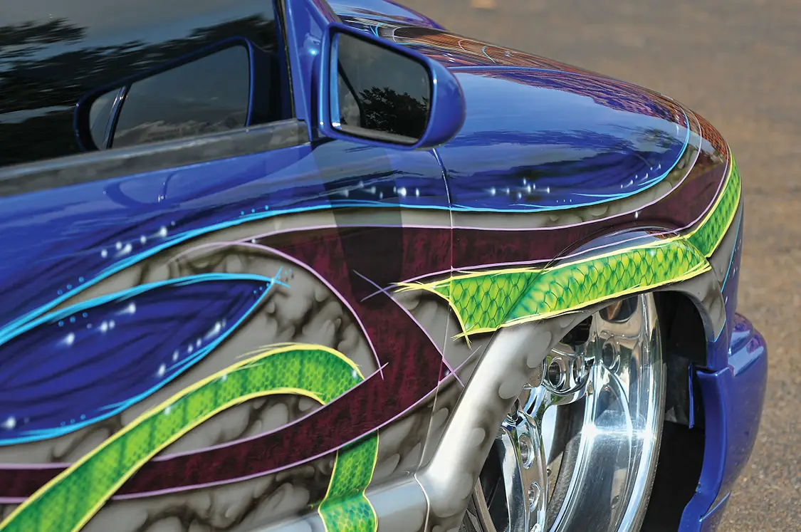 • Custom blue, a variety of PPG colors, and House of Kolor purples