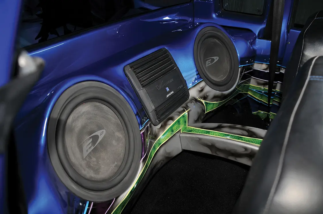 • Two Alpine 12-inch subwoofers in a custom fiberglass box