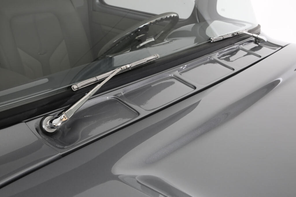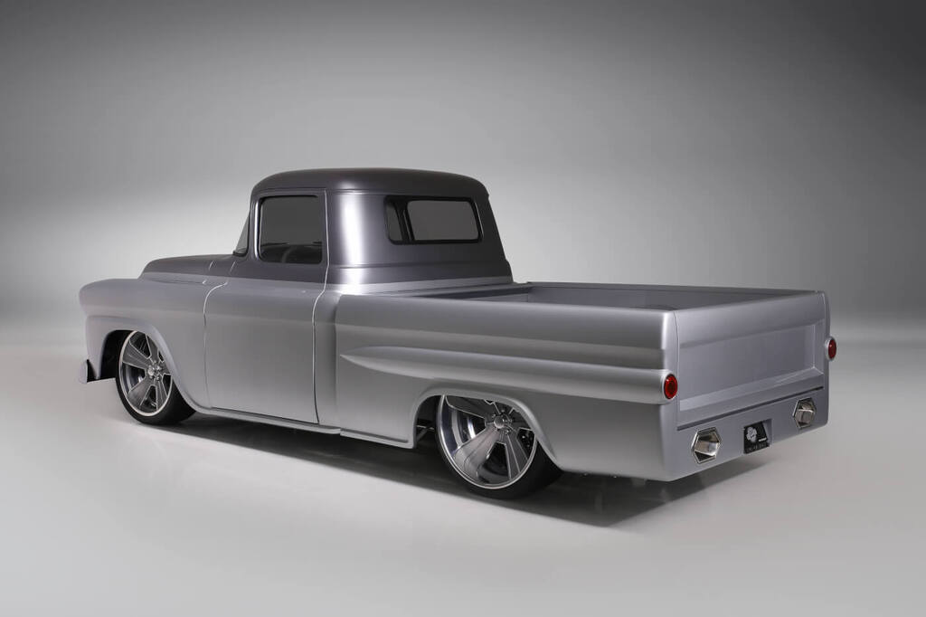 With the foundation on the way, the body was not only shaping up, it was getting some improvements. The body lines were accentuated on the sides, and the gutters were removed from the top. The wiper cowl was shaved, the tailgate was smoothed, a roll pan was added and custom exhaust tips were fitted. Under the hood, everything was reworked to flow better, and the firewall was smoothed and made to match the cowl. In the bed, the sides were smoothed, and the wheel tubs and the floor were made from ½-inch acrylic. After all of the body panels were gapped and worked smooth, the truck was covered in two-tone of BASF R-M Silver and Dark Shadow Gray. Topping off the exterior are 22- and 24-inch Raceline Eruption 5 wheels with Toyo Proxes STII tires.