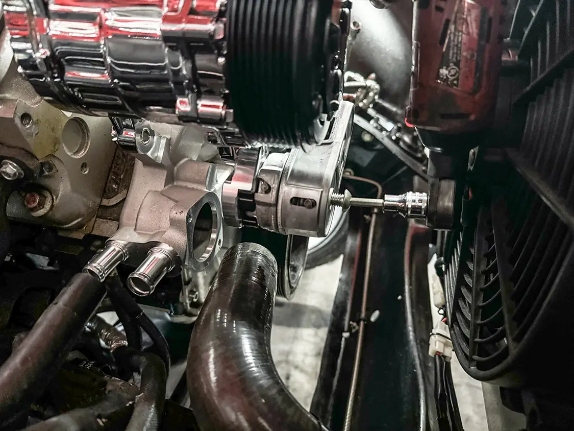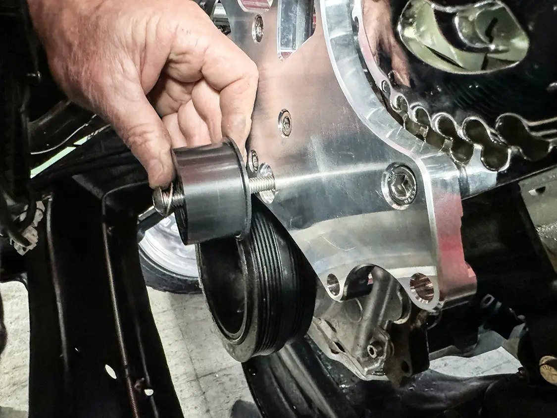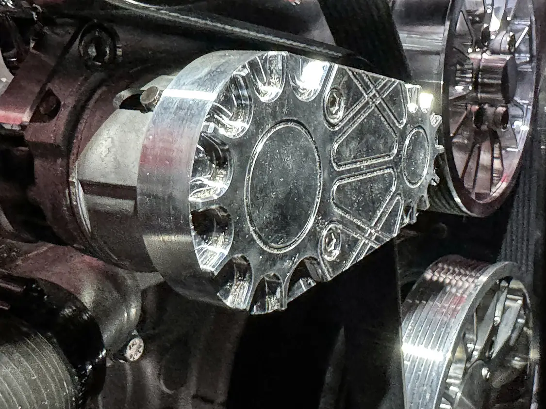 The best part? The install was smooth as by the book. Every piece fit right where it was supposed to, the hardware is top-notch, and we didn’t hit any of those “what now?” moments you sometimes get with aftermarket kits. CVF even includes a spring-loaded belt tensioner with a patent-pending adjustable bracket that takes the guesswork out of dialing in the belt. Plus, the billet compressor clutch cover and anodized spacers tie the whole look together.