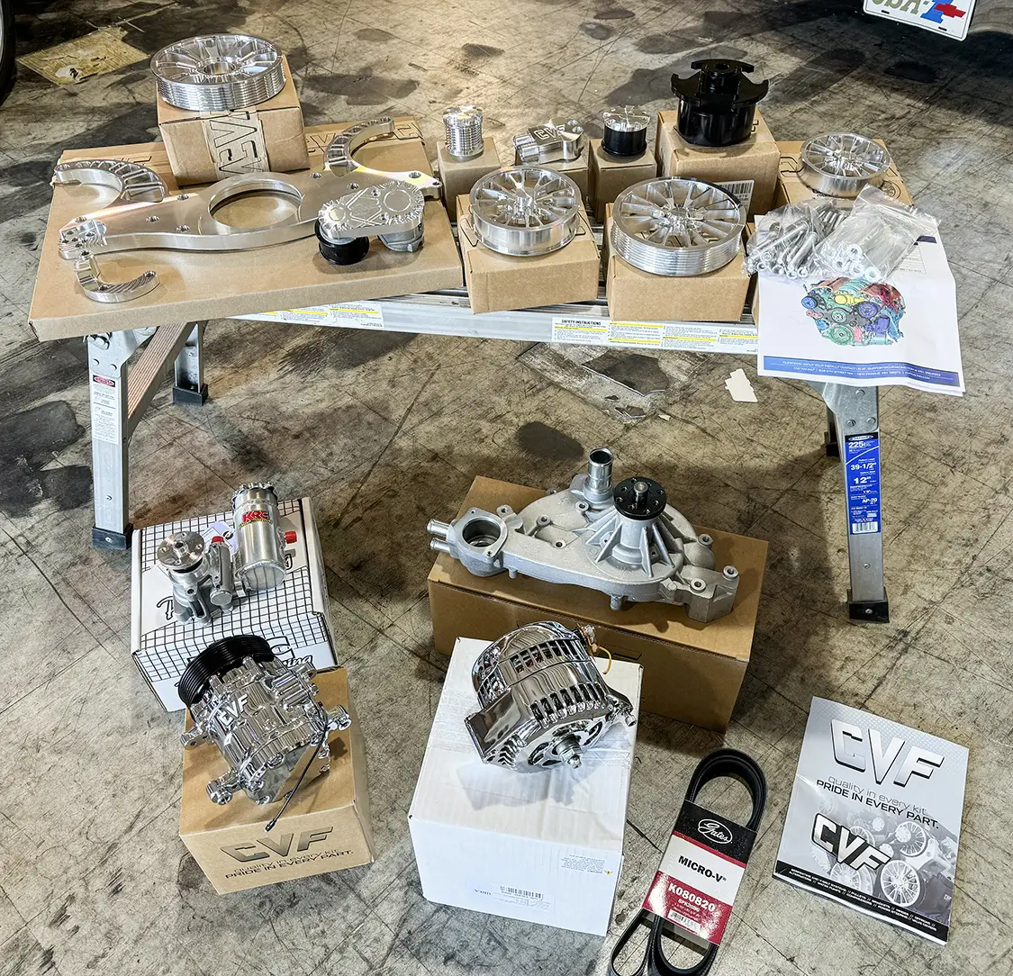 Here’s the polished Reaper Serpentine System straight from CVF—a billet beauty built to bring serious style and performance to our LS swap.