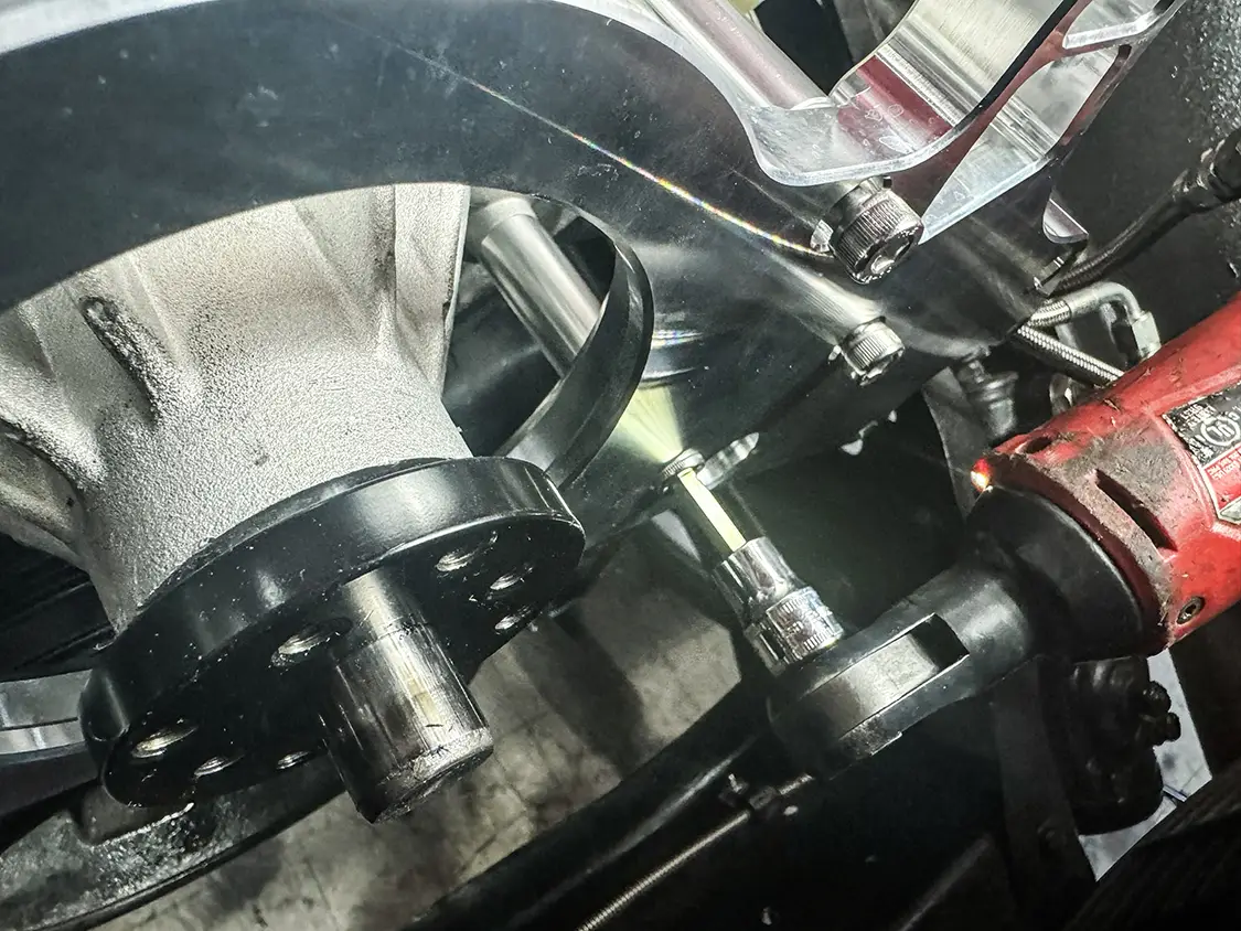 The alternator was bolted up next and held in place with the polished hardware provided.