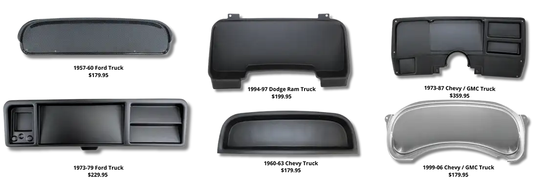 Designed for you to customize and fit your specific instrumentation needs for your 1957-1979 Ford F-100 truck and more, these blank dash panels are molded from rugged, UV-protected ABS material. These panels will also meet or exceed factory specs and are available in finishes including matte black, brushed aluminum, or carbon fiber.