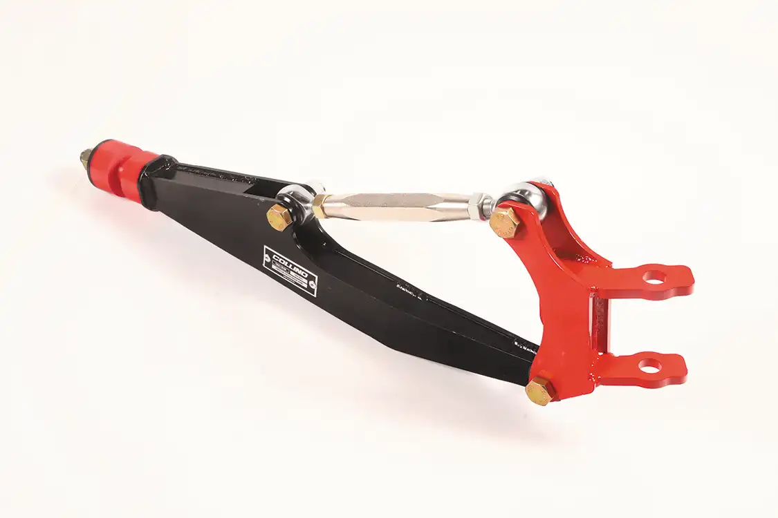 These radius arms for F-100 trucks allow quick caster alignment and are suitable for both OEM and Collino I-beams. The entire system allows full alignment to set up and is compatible with original spindles, steering systems, shocks, and springs.