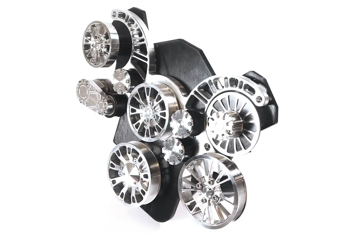 This kit raises the bar for the serpentine market, as it features an innovative bracket design, stainless steel hardware, and billet aluminum spacers. The Reaper system is CNC machined in the USA, is supported by a lifetime warranty, and is available in 4 finish options: polished, C3 Clear, Stealth Black, and Black Diamond.