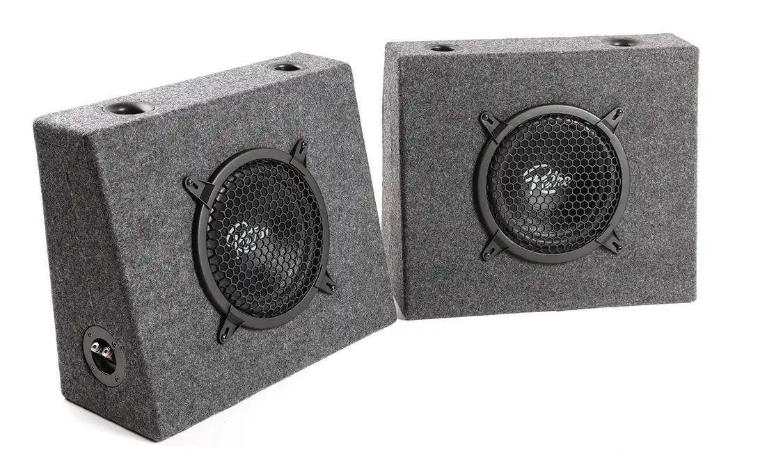 The R-TB8 Full-Range Truck Speaker Boxes are engineered to fit neatly behind the seat of classic trucks. Each speaker box is equipped with an 8-inch speaker paired with a soft dome tweeter, delivering a full range of frequencies. This speaker system handles up to 175 watts of power per box.