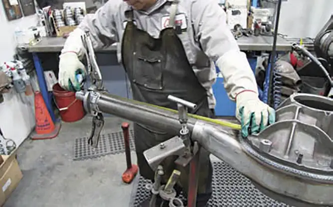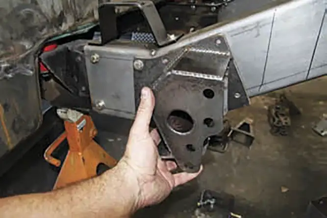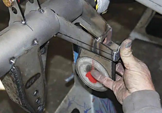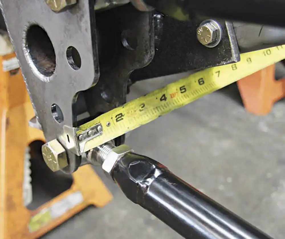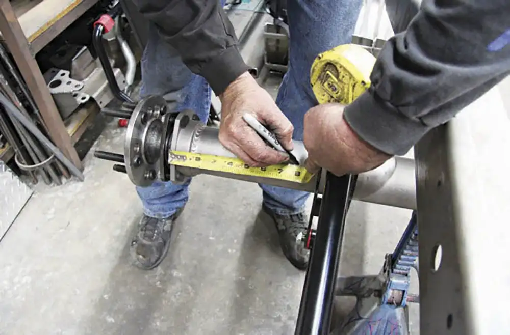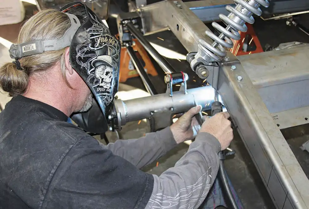 [01] Currie has been manufacturing Ford-style housings for decades. This unique housing features the early round back cover with the later wide axle webbing featured on later model housings. This combo gives the housing more strength and looks good.[01a][02] After the third member housing and axle tubes are set into place per the specs of the customer’s requested width, the outer flanges are set into a jig and tack welded together. Then the housing moves to another station where the measurements are double-checked before it’s set into a rotating fixture where the tech welds all of the joints together continuously in one strong pass.[02a][03] Next the housing moves to another technician who measures straightness to ensure that the housing is true. Then it’s on to the media blaster where the housing is deburred and cleaned to create a consistent finish that will accept paint.[03a][04] Currie manufactures its axles in extended lengths that can be cut down to customer specs. After the axles are cut they receive a quick chamfer grind on the end so the axle will slide into the carrier easily, then it’s on to the broaching machine, which cuts splines into the axles to fit into the carrier’s splines.[04a][05] Eaton’s Tru-Trac carrier is the perfect choice for street driving because it blends the performance benefits of a locker-style carrier with the drivability of a limited slip carrier. It acts as the heart of the third member without the rest of the internals, such as Currie’s 9+ case, the motive gear ring and pinion set.[05a][06] There’s more to setting up a third member gear set than meets the eye. Proper ring-and-pinion alignment is critical to good wear and tear. Currie’s talented technicians make this look like child’s play. Every third member is assembled to proper specs, tested, and then rechecked to ensure it’s done right the first time.[06a][06b][07] The last stop is the final assembly area where the third member and the axles are installed, but first, all of the components and measurements are checked against the customer’s build sheet. After assembly, the completed differential is loaded onto a pallet and shipped to the customer.[07a][08] For added horsepower a No Limit Engineering back-half frame kit was installed to accommodate the extra cross members and create greater strength. Take a look at No Limit’s Fat- Bar 4-link kit; nothing has been spared. It includes, not only the 4 bars and adjusters, but also all of the mounting cages, upper and lower shock mounts and Grade 8 fasteners.[08a][09] After the back-half kit was bolted on, we grabbed the front bar cage and located the mounting point on the side of the frame that corresponds with one of the mounting holes on the back-half kit. Don’t worry if you’re not using No Limit’s back-half kit with the Fat Bar system; this kit will work with the stock C-10 rails as well. Once the cage was in place, we marked the holes with a Sharpie and drilled through the frame rails.[09a][09b][10] Now it’s time to mount the cage to the frame using the supplied fasteners that came with the Fat Bar kit. Once that was in place we noticed that we had some extra hardware, a quick look at the cages showed us that we missed a hole in the center of the cage. We needed to drill a hole in the frame using an extra long 3/8-inch drill bit, which could have been avoided if we’d measured first.[10a][10b][11] Here is where a lot of people make mistakes on a 4-link set up. All four of the bars need to be the exact same length to ensure that the wheelbase is square to the front wheels. An easy way to set the bar and adjusters up is to slide the solid end over a bolt, then lube the adjusters with anti-seize paste and turn in the adjusters to the desired length to match the wheelbase. To duplicate for the remaining bars, use another bolt to slide the bars together until they’re all square.[11a][11b][12] Measure the front cages from outside to outside, and center the housing in the frame rails.[12a][13] Double-check the outside flange-to-frame-rail measurement just to make sure that the diff is centered in the frame rails. Now measure the distance from the outside of the frame rail to the outside of the rear link mount and make sure that the bars are mounted parallel to the frame rail.[14] To set the pinion angle we used a degree wheel like this one available from Harbor Freight. With the pinion angle set at 4 degrees up, or positive, we used a tie-down strap to hold everything snug before we tack welded the rear bar mounts to the axle tubes.[14a][14b][15] The same degree wheel helped us square the lower coil-over mounts to the housing before they were tacked to the housing.[16] Next, the upper coil-over mounts were a breeze to install on the No Limit back-half kit, because the holes for the upper bracket were already drilled out for the mount. All we had to do was install the mount using the fasteners that came with the kit.[16a][16b][17] Now that we had everything mocked-up, we double-checked our measurements one more time before moving on to the panhard bar mounts.[18] Panhard bar placement is always a hot topic. For trucks, a longer bar located in a neutral angle works well for lateral control, plus mounting the bar to the driver’s side of the axle and to the passenger side of the frame works better for driving on asphalt.[19] With everything in place, let the welding begin! Next time we will install a set of Ride Tech adjustable coil-overs and Wilwood brakes.