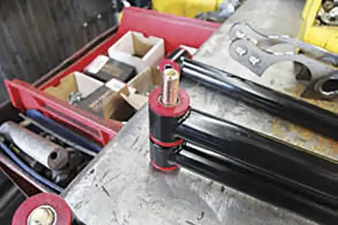 We wanted to show you just how easy it is to install this pair on the back of a ’68 C-10. We ordered a Currie Enterprises 9-inch Ford-style housing built to our specs that allowed us to squeeze 12 ½ inches of rubber on either side of the bed. Connecting and directing all of the power from the engine to the diff is No Limit Engineering’s Fat Bar 4-link system. No Limit’s kit has everything you need to mount a 4-link-style suspension to your C-10-based vehicle, including an adjustable panhard bar that will allow you to tune your truck to handle more torque and smooth out the tight curves. ST