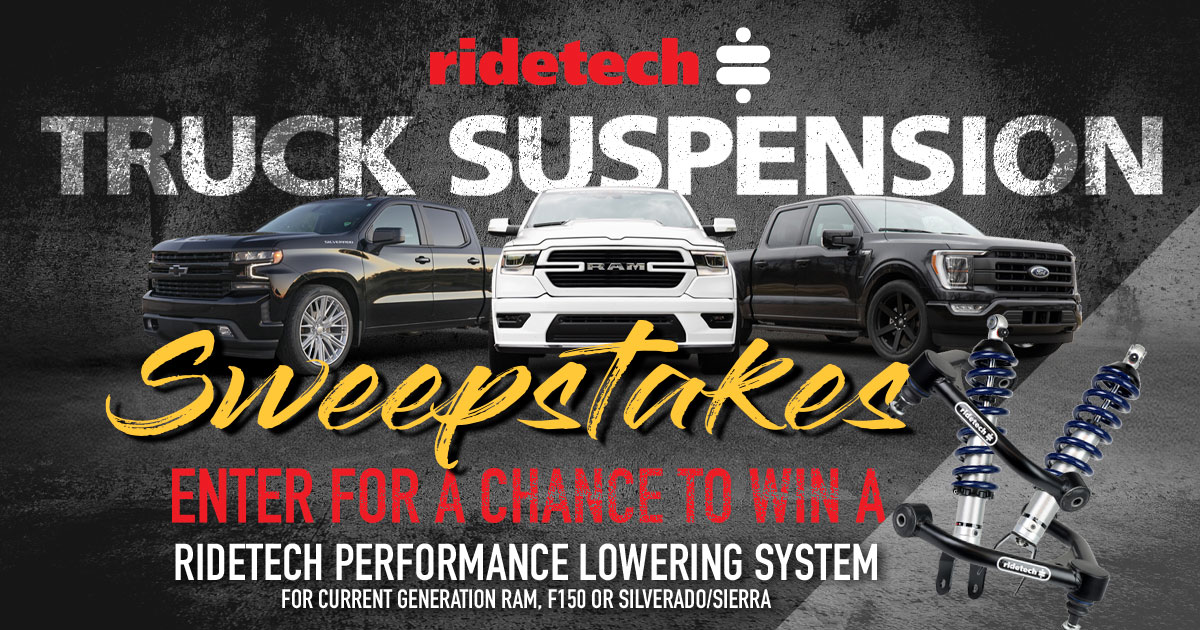 Ridetech recently added a full line-up of performance-lowering systems for current generation Ram, F-150, and Silverado / Sierra to their product portfolio. To celebrate that release, they are giving away a complete performance-lowering system to one lucky winner!
